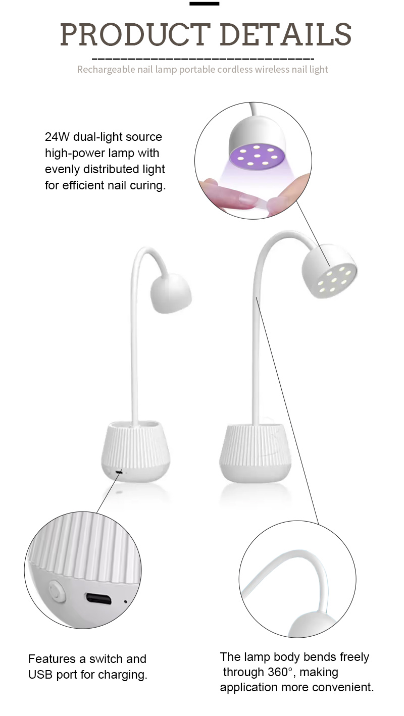 이 제품은 수축 없이 균일한 접착제 건조를 보장합니다. 듀얼 광원이 부드러운 발열을 제공하여 손 변색과 눈의 피로를 방지하고 손과 발 모두에 적합하며 매우 빠른 건조 결과를 제공합니다.