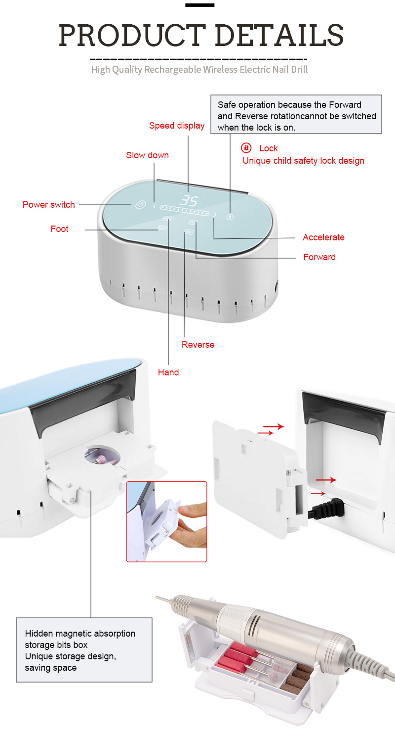 217 폴란드어 제거용 고속 35000RPM 전기 네일 파일의 제품 특징 및 응용
