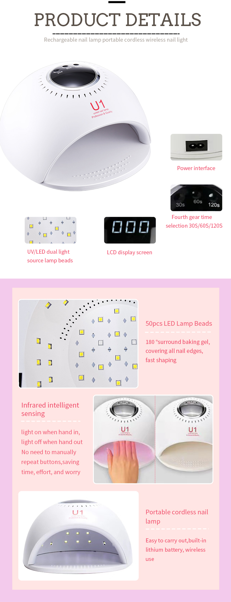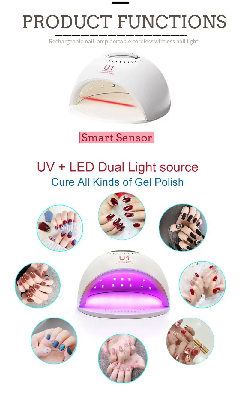 이 제품은 수축 없이 균일한 접착제 건조를 보장합니다. 듀얼 광원이 부드러운 발열을 제공하여 손 변색과 눈의 피로를 방지하고 손과 발 모두에 적합하며 매우 빠른 건조 결과를 제공합니다.