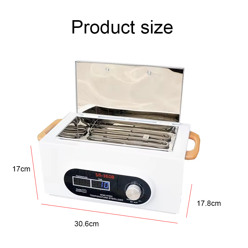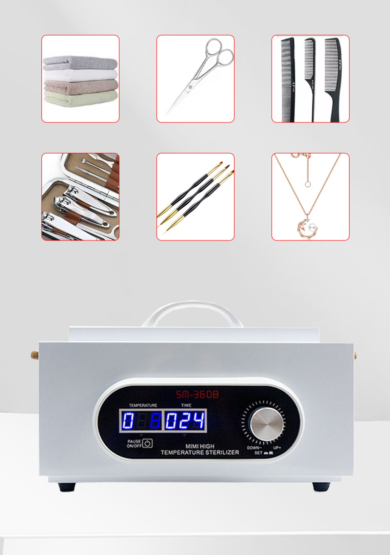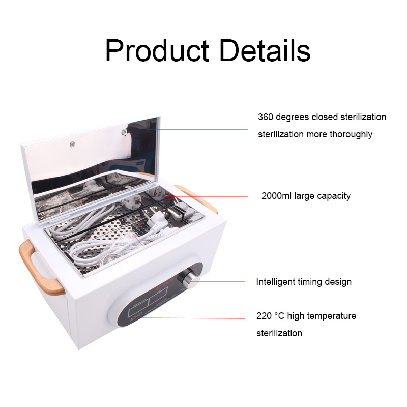 이 소독기는 주로 가열 링을 통해 열을 발생시키며 높은 온도를 소독에 활용합니다.