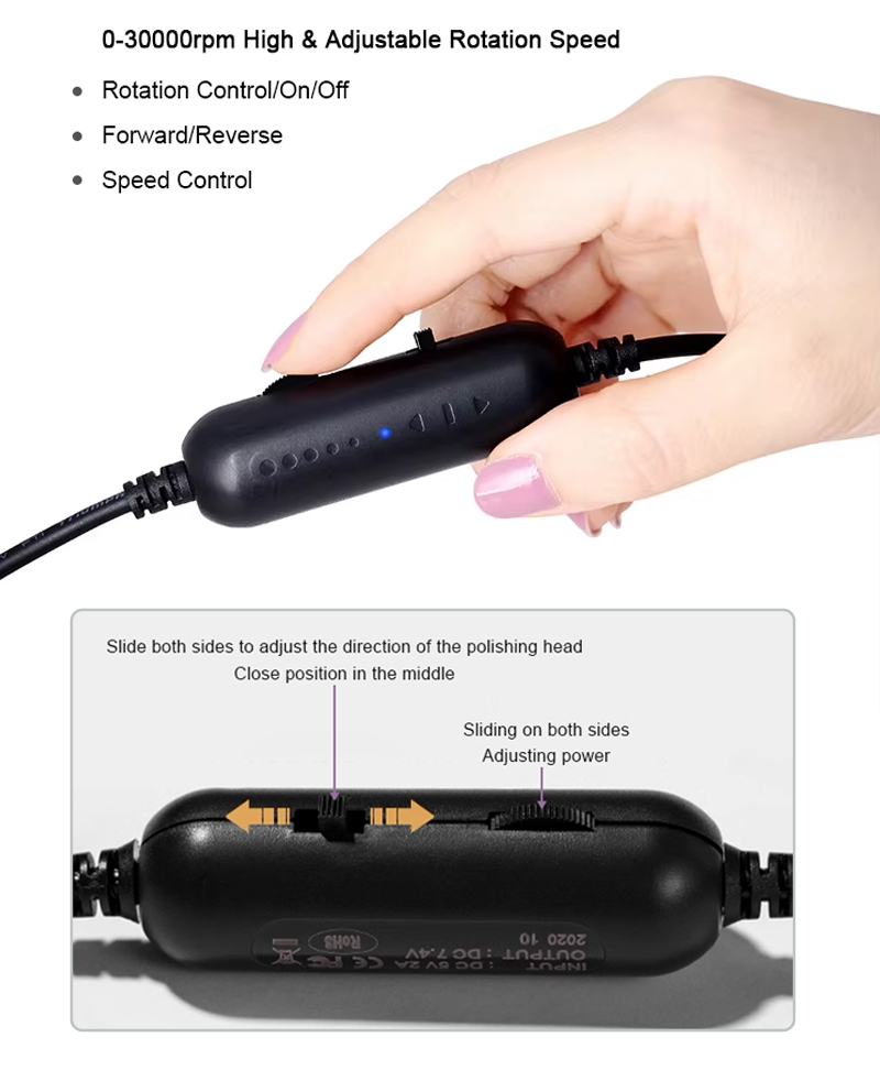 1, 조정 가능한 속도, 강력한 모터, 고속 샌딩, 무한 손잡이 실시간 속도 조정.