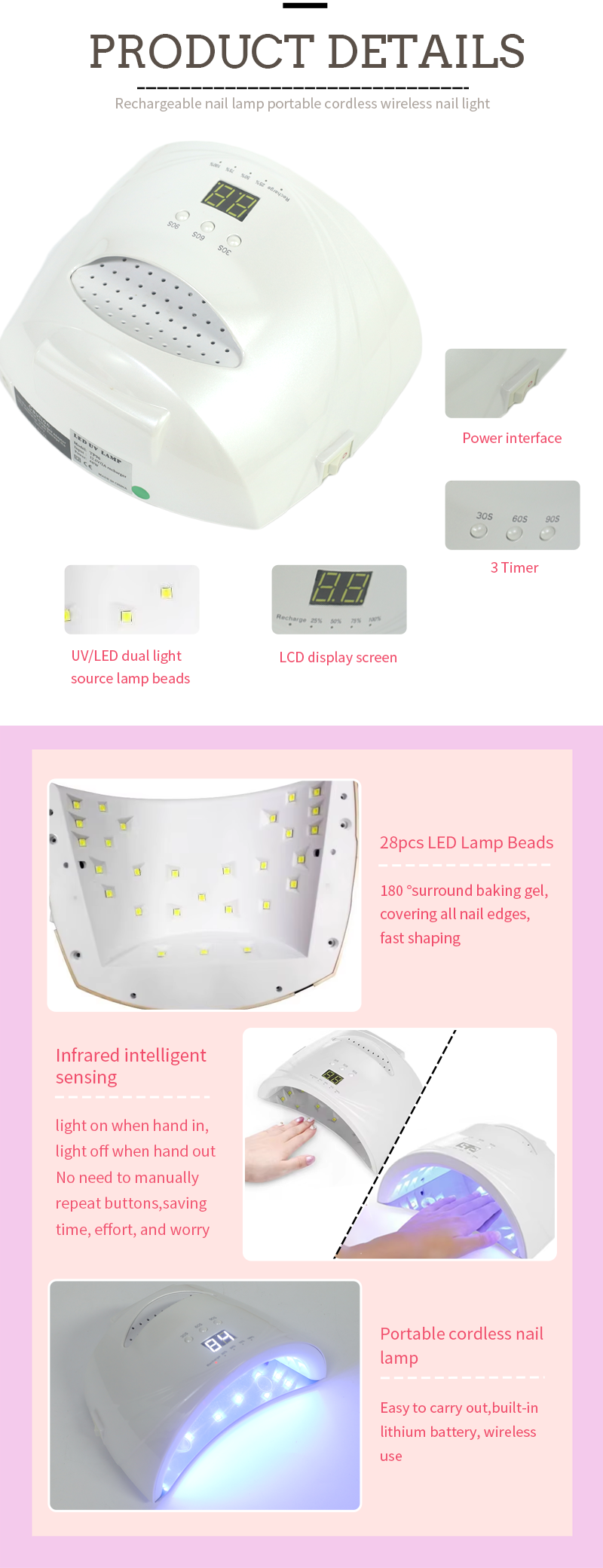 이 제품은 수축 없이 균일한 접착제 건조를 보장합니다. 듀얼 광원이 부드러운 발열을 제공하여 손 변색과 눈의 피로를 방지하고 손과 발 모두에 적합하며 매우 빠른 건조 결과를 제공합니다.