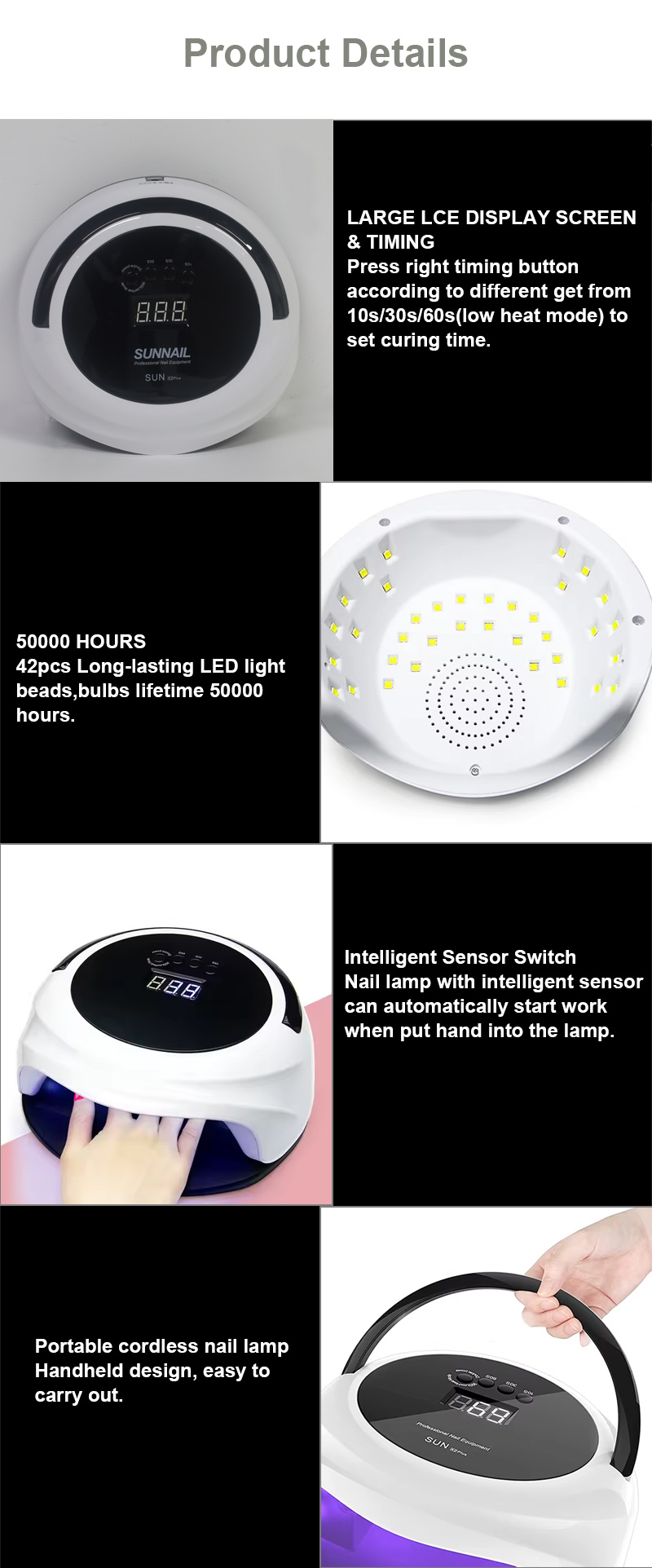 | 자동 센서 기능을 갖춘 네일 건조 램프 기능 세부 정보 |