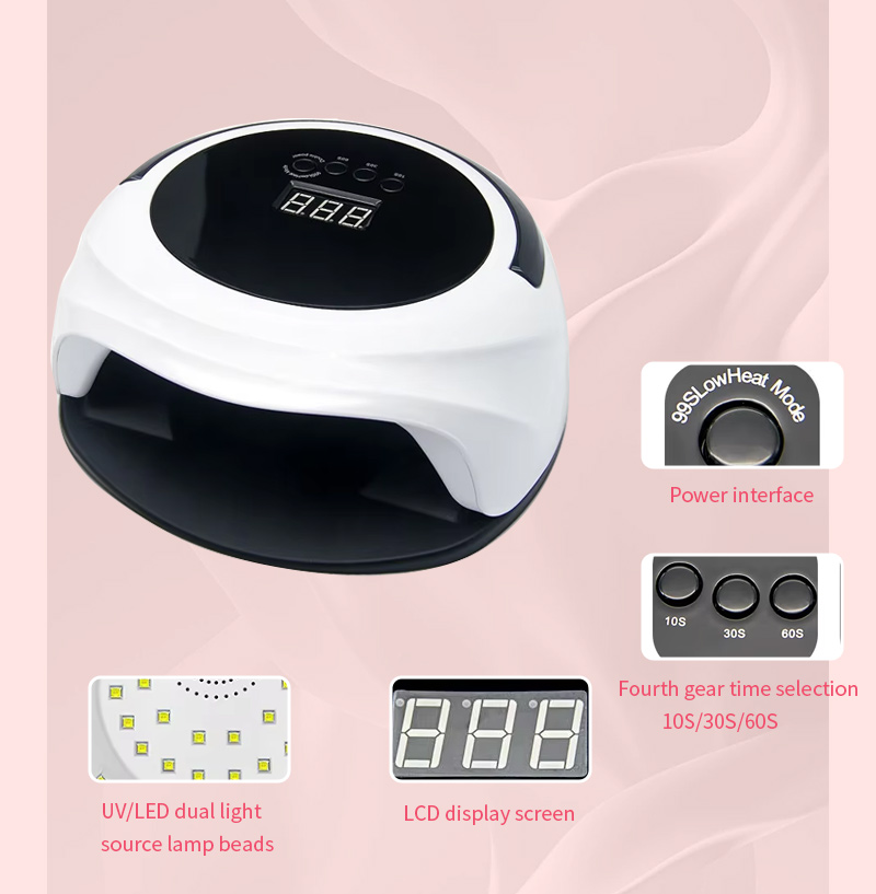 자동 센서 기능이 있는 네일 건조 램프는 수축 없이 균일한 접착제 건조를 보장합니다. 듀얼 광원이 부드러운 발열을 제공하여 손 변색과 눈의 피로를 방지하고 손과 발 모두에 적합하며 매우 빠른 건조 결과를 제공합니다.