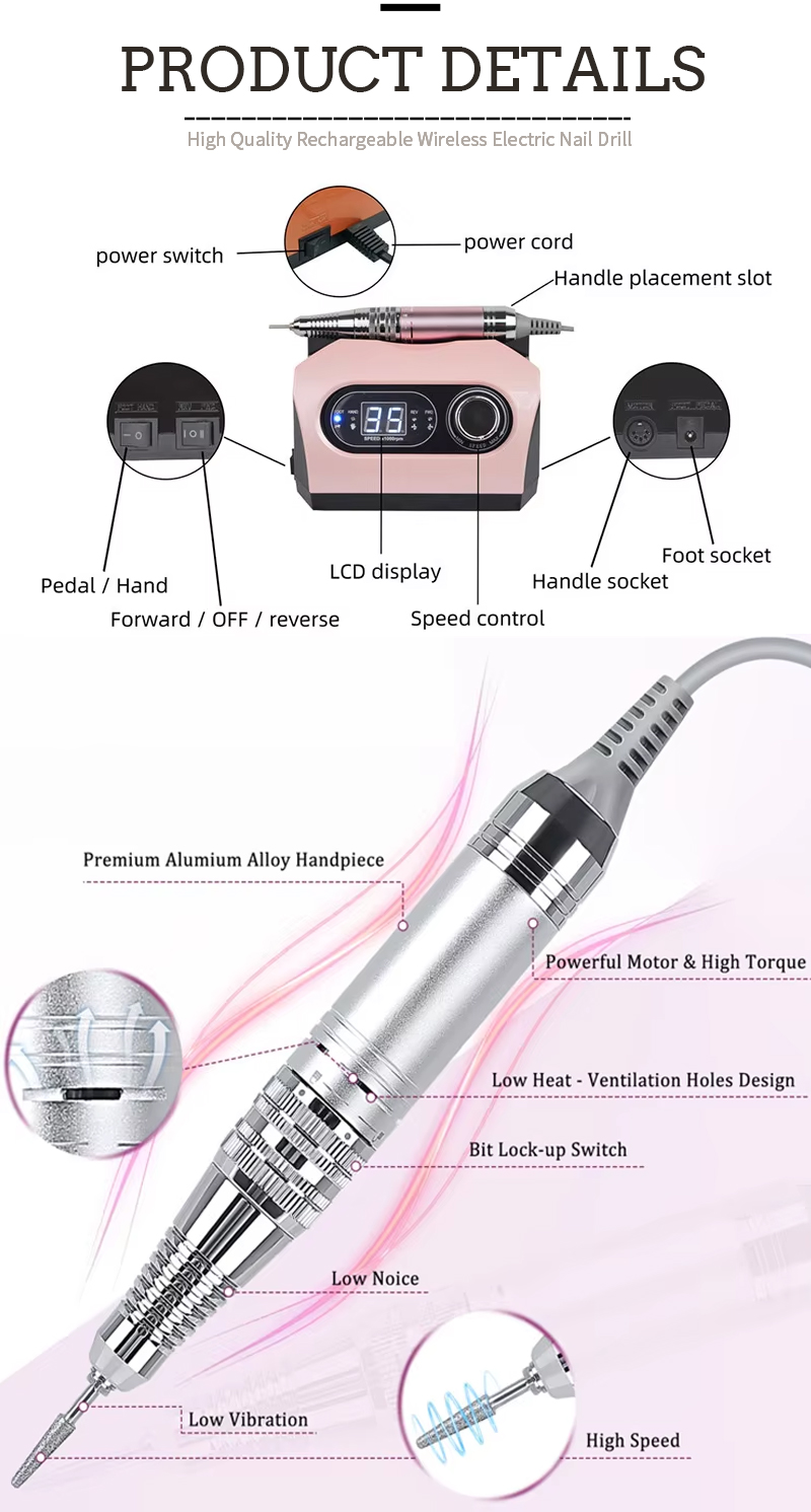 매니큐어 제거용 717 고속 30,000RPM 전동 네일 파일의 제품 특징 및 응용