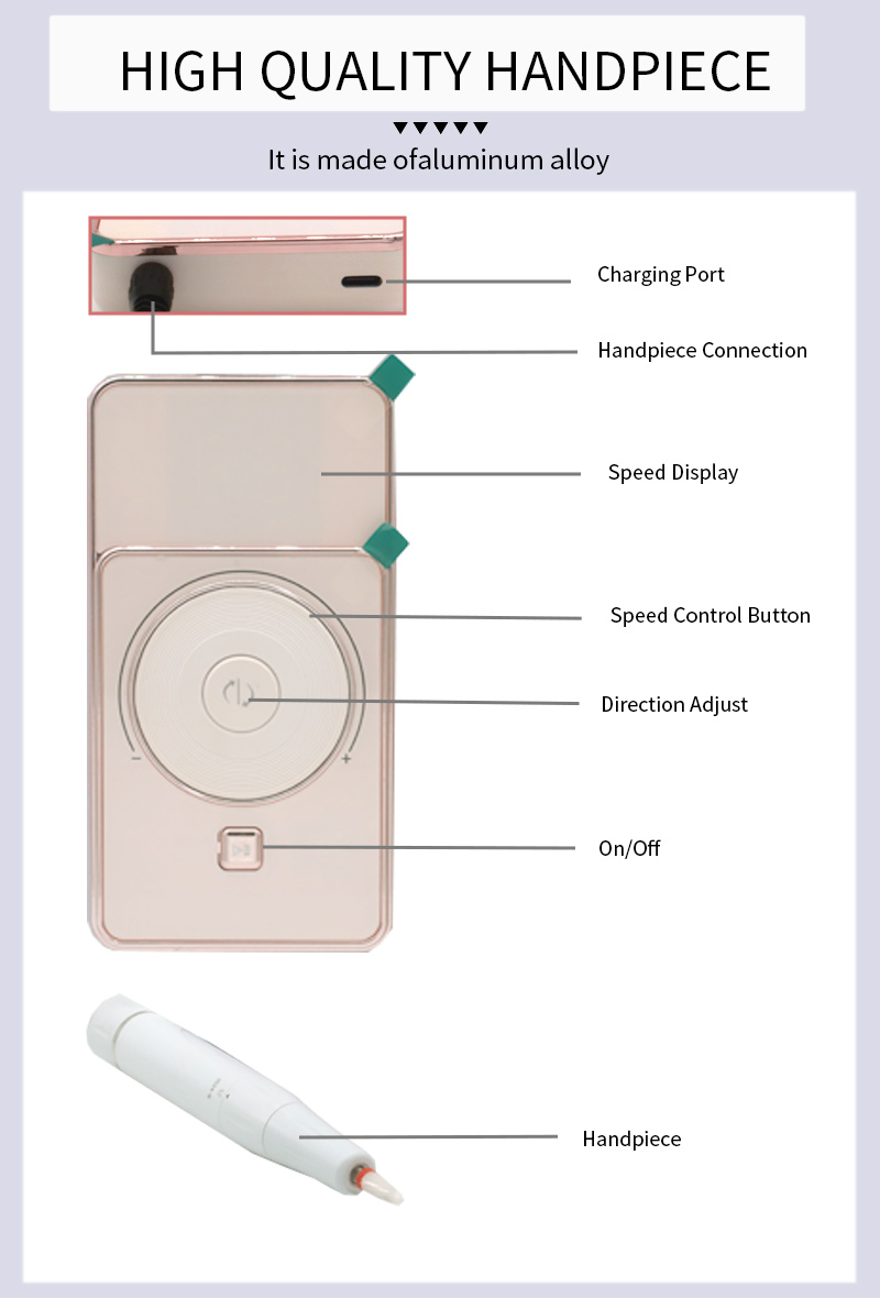 이 고속 저소음 연삭 펜 디스플레이 디자인에는 샌딩 펜 소켓, LCD 액정 디스플레이가 회전 수/전력/방향, 속도 스위치 손잡이, 시계 방향/시계 반대 방향 토글 버튼, 일시 정지 버튼, 30,000rpm 전문 모터, 나사식 잠금 연삭 헤드를 표시할 수 있습니다.