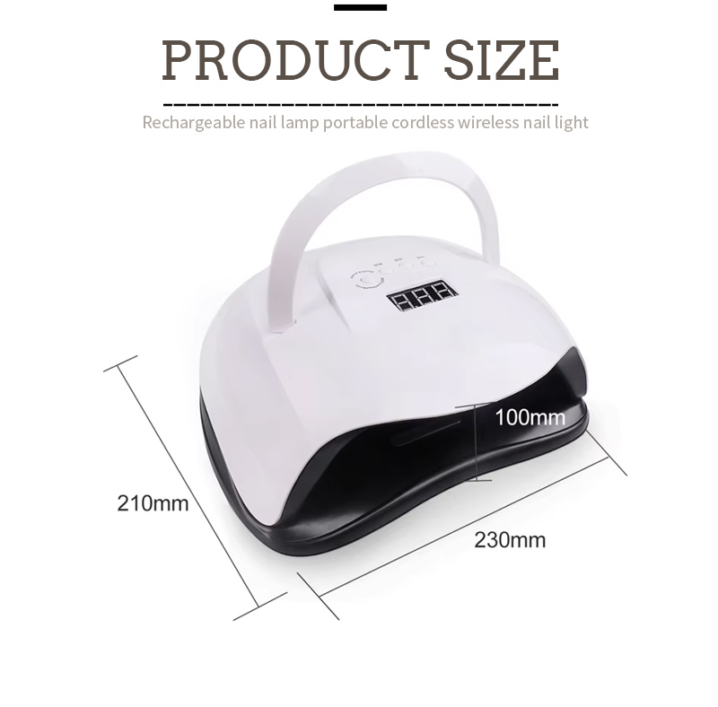 휴대용 네일 건조 램프의 크기는 길이 180mm, 너비 190mm, 높이 85mm로 대용량이며 손과 발을 모두 사용할 수 있어 매우 편리합니다.