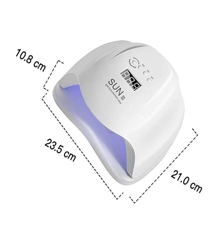 속건성 젤 네일 램프는 길이 235mm, 폭 210mm, 높이 108mm로 대용량이며 손과 발을 모두 사용할 수 있어 매우 편리합니다.
