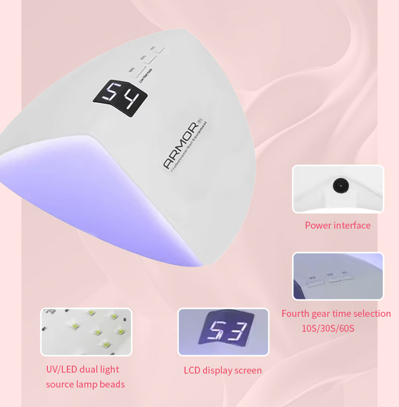 이 제품은 수축 없이 균일한 접착제 건조를 보장합니다. 듀얼 광원이 부드러운 발열을 제공하여 손 변색과 눈의 피로를 방지하고 손과 발 모두에 적합하며 매우 빠른 건조 결과를 제공합니다.