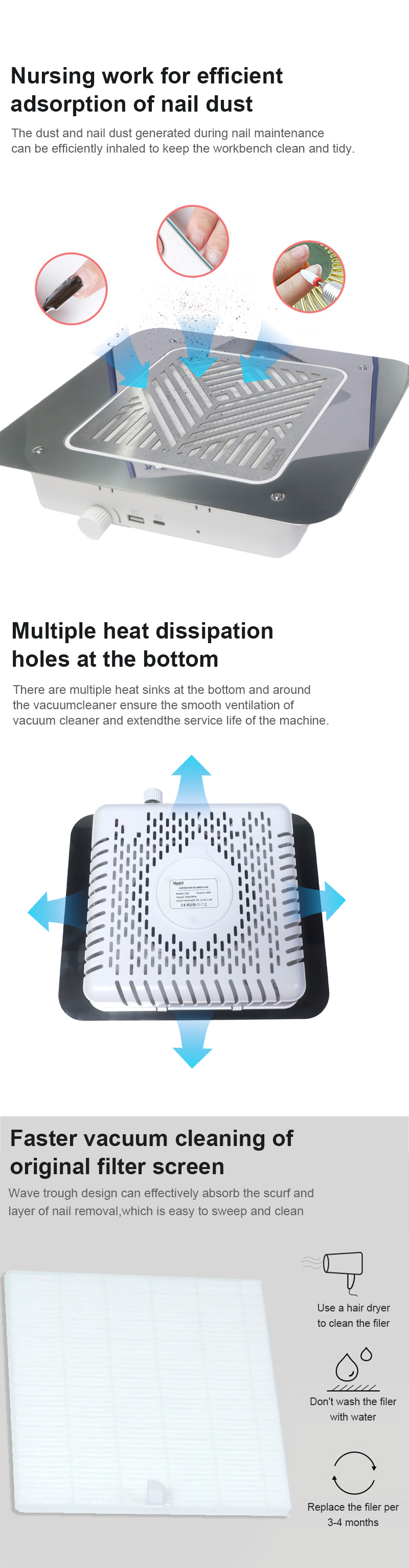 손톱 잔해를 강력하게 흡착하는 제품은 먼지가 새지 않고 조리대를 깨끗하고 깔끔하게 유지하며 빠른 진공 청소로 먼지가 새지 않고 더 효율적입니다.