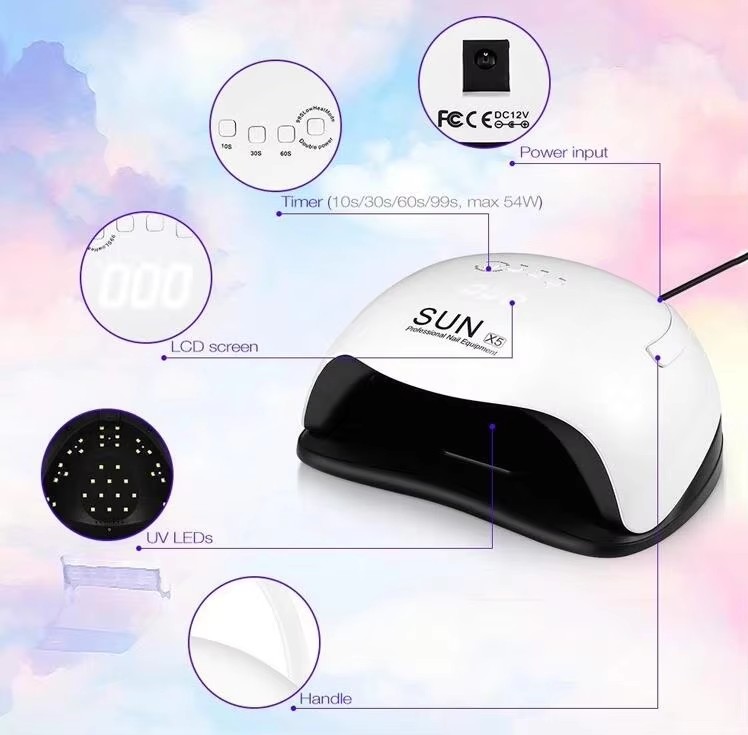 4)충전식 매니큐어 램프 54 와트 충전식 제품 표면 디스플레이 설계에는 타이밍 시간 변경, 지능형 디스플레이를 볼 수있는 대규모 LED 디스플레이 화면이 있습니다.